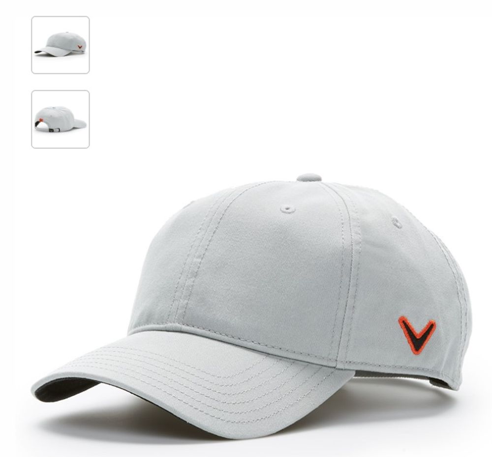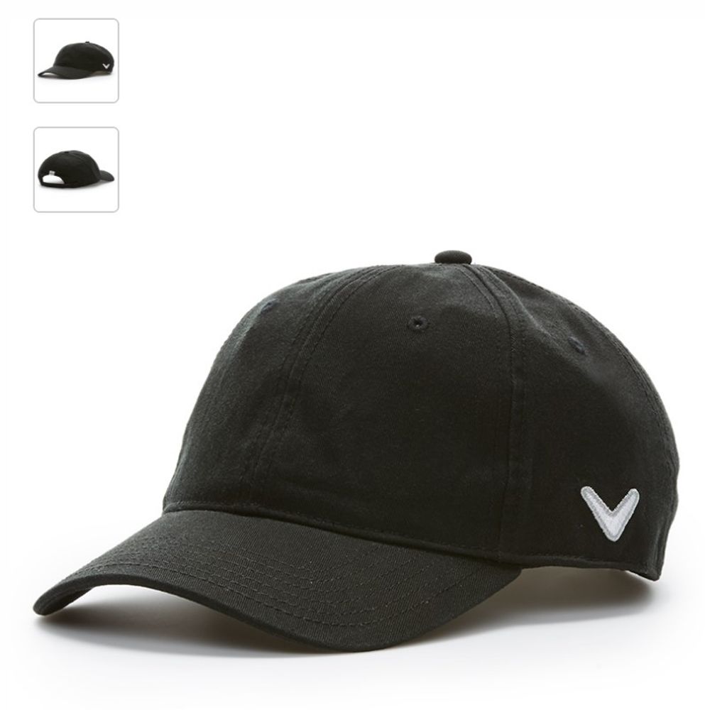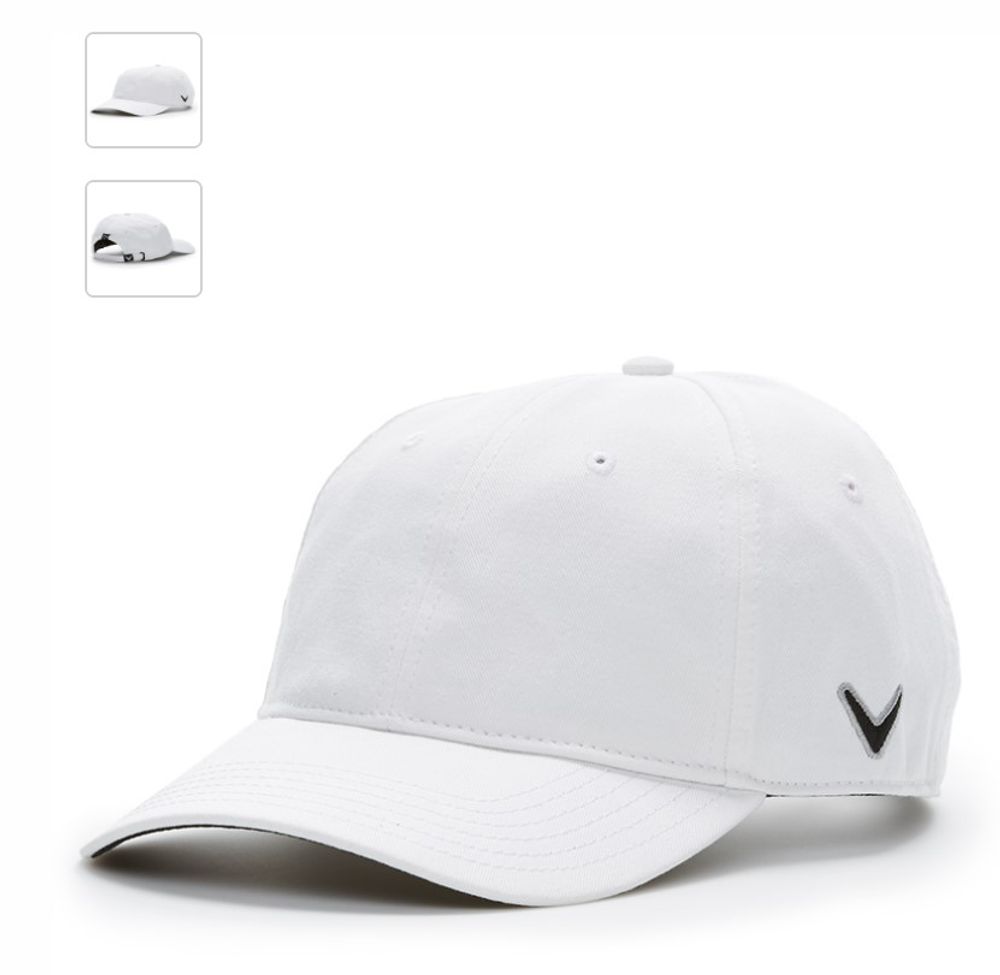Genuine Callaway Heritage Cap. 100% washed cotton for worn and soft feel. Low rise profile, unstructured. Adjustable buckle Chevron closure. Unstructured low profile. Embroidered Chevron on side panel with contrast thread. Contrast Callaway woven label on back arch.
