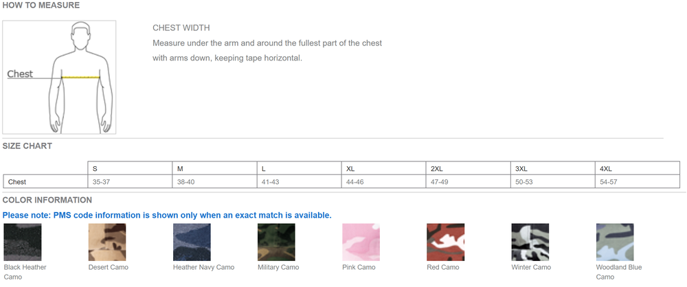 NOTE: For camo items, we recommend black or bright safety orange logo