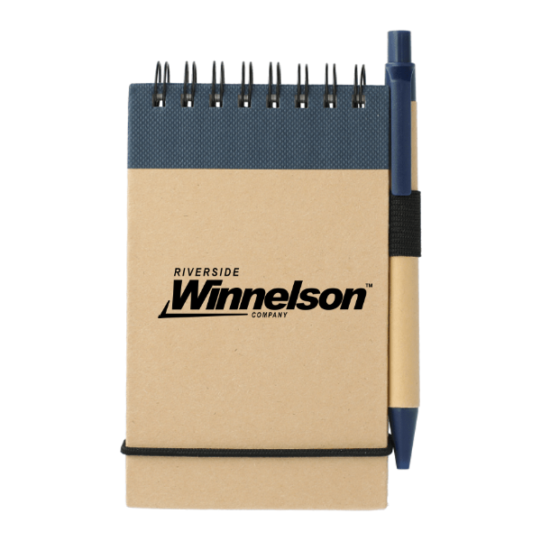 The 5" x 4" Recycled Jotter with Pen features a recycled hard cover and includes a matching recycled barrel ballpoint pen. It also features a plastic band closure, a pen loop and 60 cream ruled pages. A pen imprint is not available and pens are packed separately. Through a partnership with 1% For The Planet, one percent of sales of this and all EcoSmart products will be donated to nonprofits dedicated to protecting the planet. Due to the nature of the material, there may be color variances.