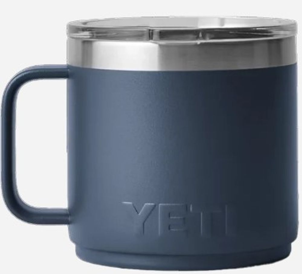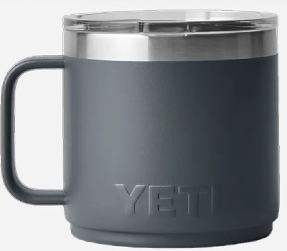 The YETI Rambler Mug 2.0 is more versatile than ever. These stackable mugs will keep your drinks like coffee or tea hot or afternoon iced brews cold at the right temperature for hours. The double-walled vacuum insulated stainless steel is puncture and rust resistant. The 360 degree welded handle allows for a comfortable hold and the MagSlider™ lid keeps splashes at bay.