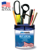 Generously large organizer to hold office supplies AND makes a great billboard on your customer's desk! Offers full wrap-around imprint area prominently displaying the 'Buy Local' design. An organizer with three section to hold pens, pencils and other office items. Textured base keeps items stabilized. Permanently sealed with break-resistant plastic. 3 3/4" W x 4 1/8" H.