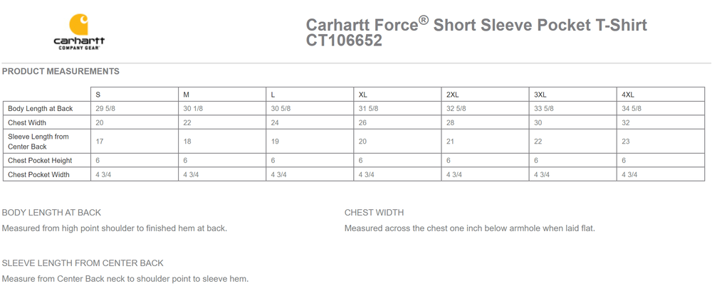 • Carhartt Force labeling on left sleeve