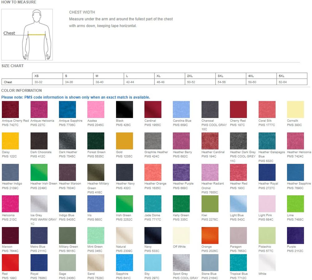 - 65/35 poly/ring spun cotton (Dark Heather, Heather Berry, Heather Cardinal, Heather Galapagos Blue, Heather Heliconia, Heather Indigo, Heather Irish Green, Heather Maroon, Heather Military Green, Heather Navy, Heather Orange, Heather Purple, Heather Radiant Orchid, Heather Royal, Heather Red and Heather Sapphire)