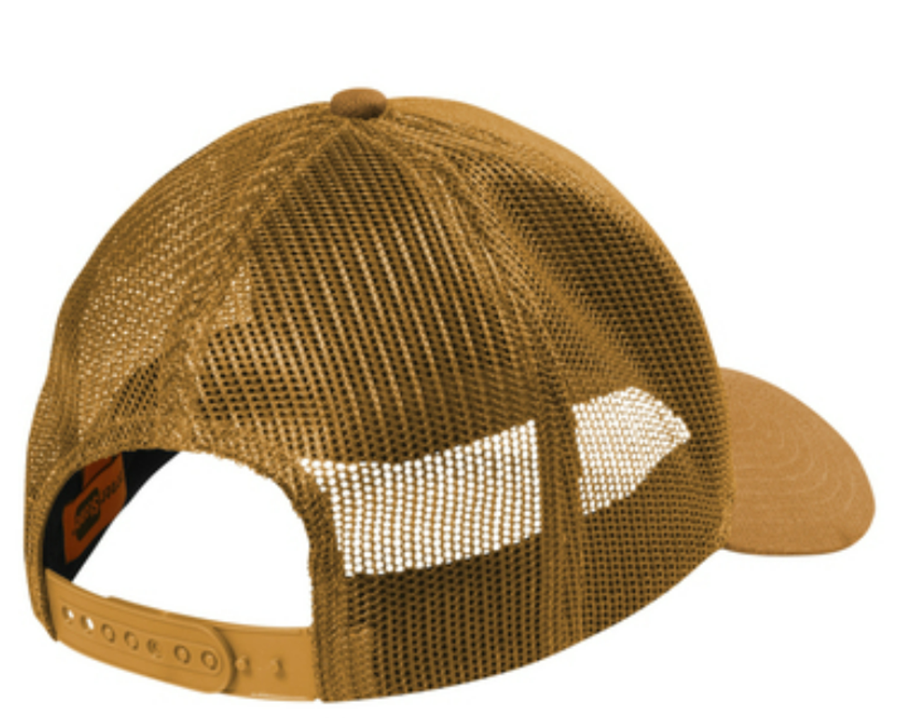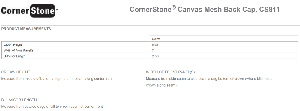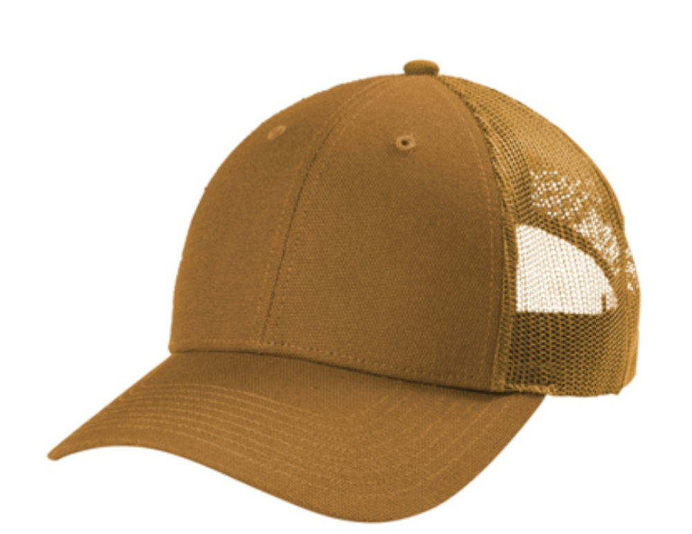 - Fabric: 100% cotton canvas bill and front two panels; 100% polyester woven mesh mid and back panels