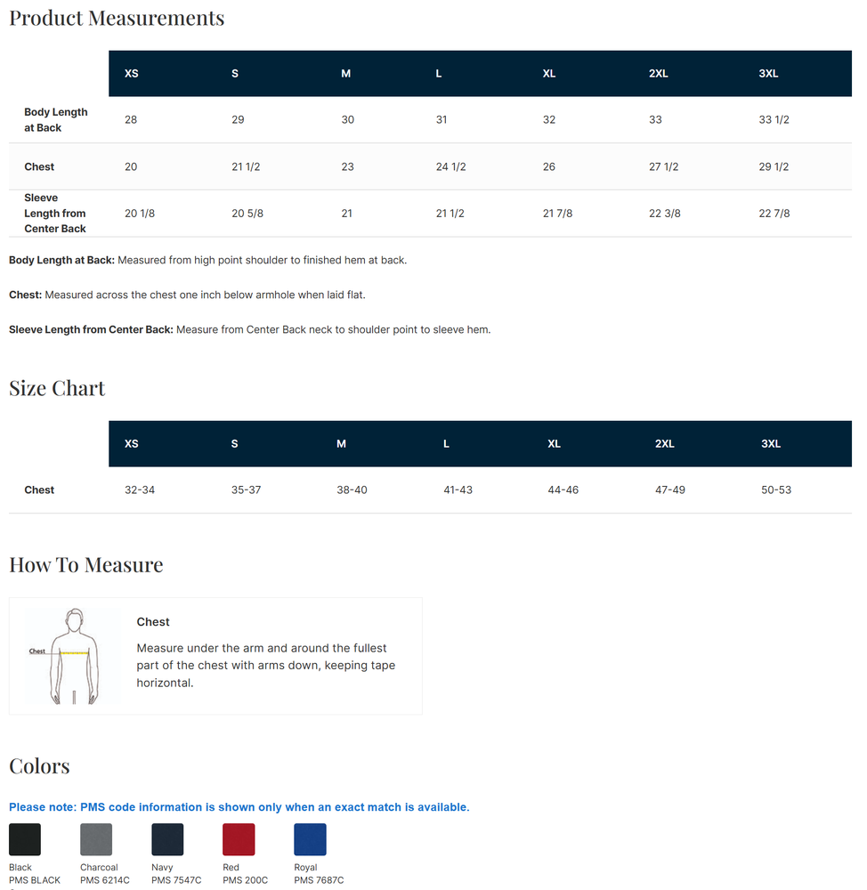 Pricing includes your location's logo printed on full chest.
