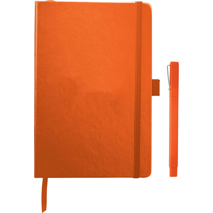 Set includes (2800-11) Nova Bound Journal Book™ and (6620-31) Ambassador Square Ballpoint. Hard cover journal with built-in elastic closure. Ribbon page marker. Expandable accordion pocket. Includes 96 sheets of lined white paper.