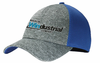 This cap has a pro football heathered look and breathable stretchable mesh for the ultimate in comfort and fit. Fabric: 96/4 poly/spandex Shadow Stretch Mesh front panels and bill 100% polyester mid and back panels Structured Profile with Mid Closure. Stretch fit.