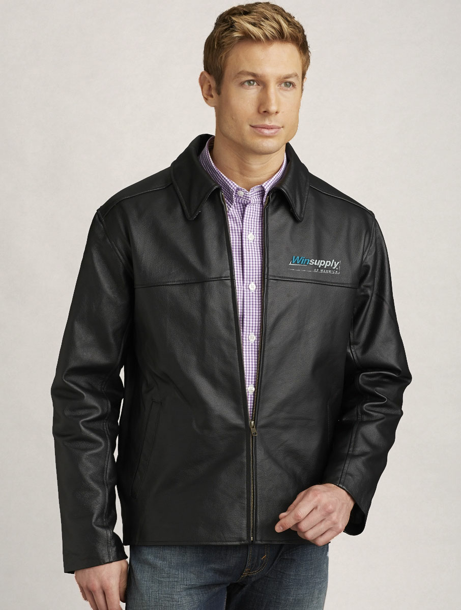 Durable, long-wearing black top-grain leather will give you years of stylish comfort. Made of top-grain leather with heavy-duty brass zipper, two side slash pockets and an inside breast pocket. Nylon lining with polyester fiberfill.