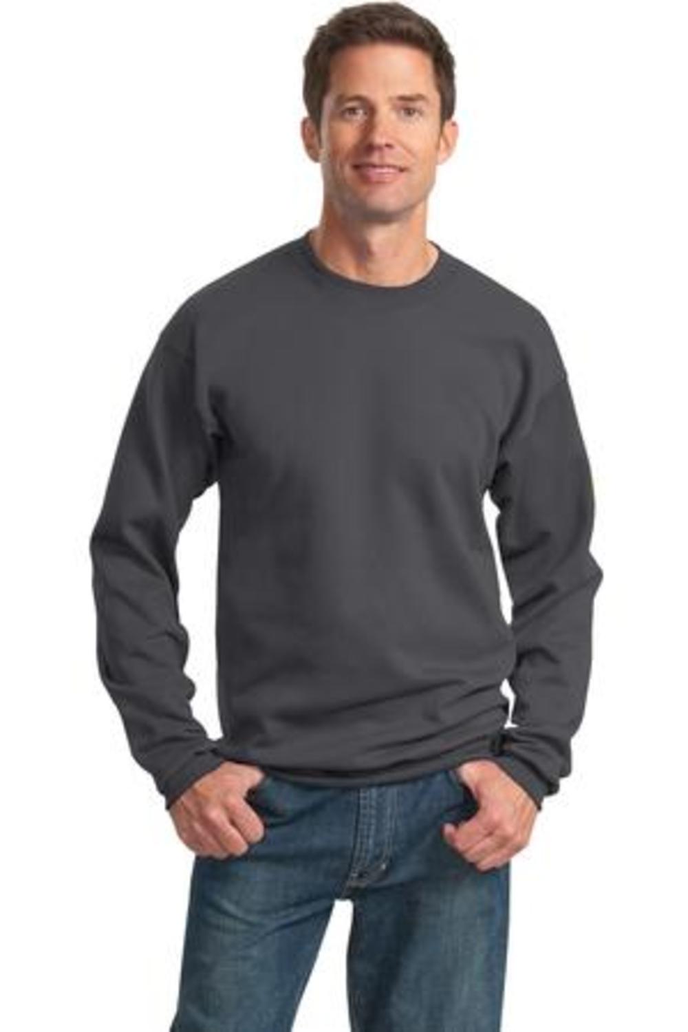 This traditional crewneck is perfect for the gym or relaxing. 9-ounce 50/50 cotton/poly fleece. Coverseamed crewneck arm seams and waistband. Rib knit-in collar, cuffs and waistband. Set-in sleeves.