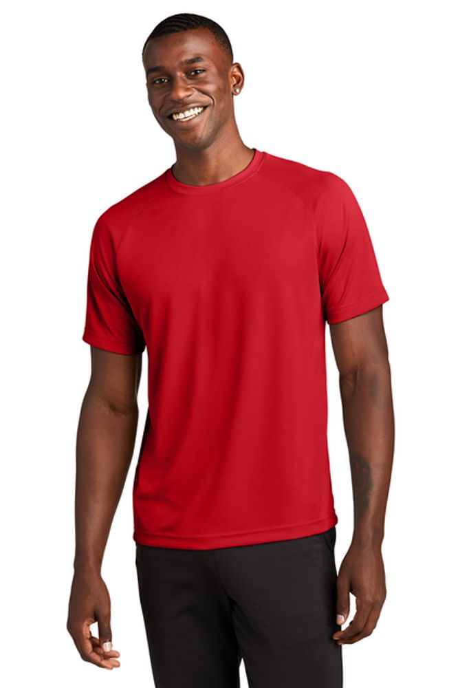 A full athletic fit lets you move freely while Dry Zone fabrics superior breathability wicks away moisture fights odor and keeps you cooler. 3.8-ounce 100% polyester. Tag-free label. Double-needle sleeves and hem.