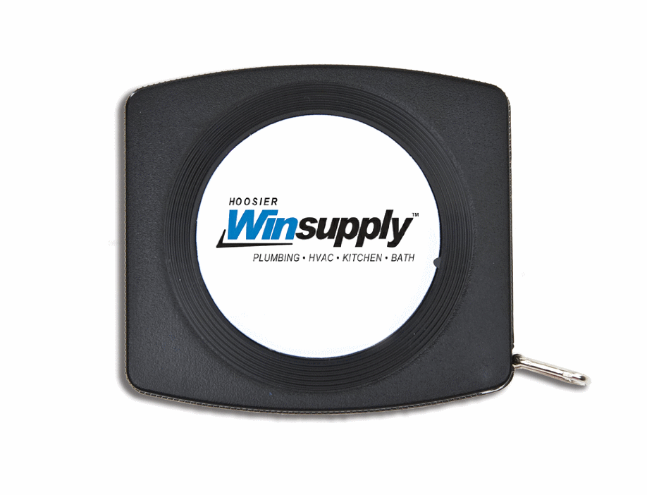Lufkin® 1/4"x6' Diameter Tape - English scale - 1/4" blade graduated consecutive inches to 1/16ths, first 12" to 1/32nds - front side of blade. Diameter inches to 1/100ths - back side of blade. Blank space before zero. Black, lightweight plastic case. Gift boxed in brown craft box. 1/4" W x 6' L. Pricing includes full color logo on white decal.