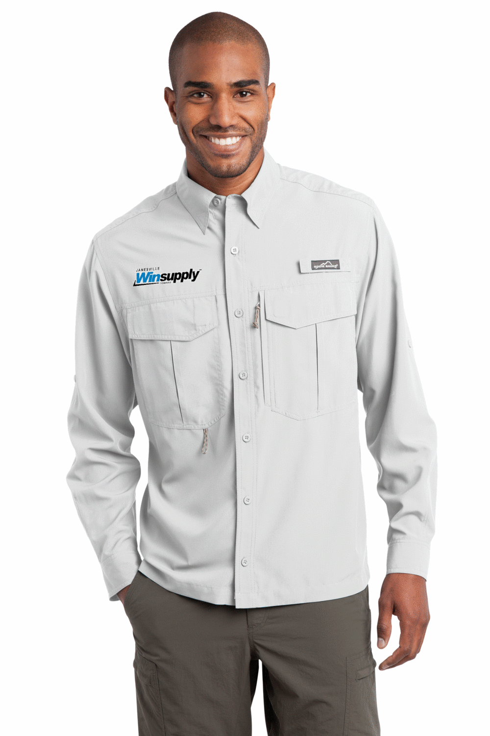 Pricing includes 1 or 2-color logo embroidered on right chest opposite 'Eddie Bauer' logo.