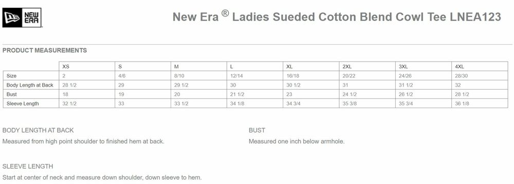 A longer tunic length, a cowl neck and unbelievable softness make this sueded tee perfect for the stands or the streets. 5-ounce, 60/40 sueded ring spun cotton/poly with heat transfer label for tag-free comfort. Features contrast twill drawcords and embroidered New Era flag logo on left hem. Rib knit cuffs with thumbholes and curved drop tail hem.