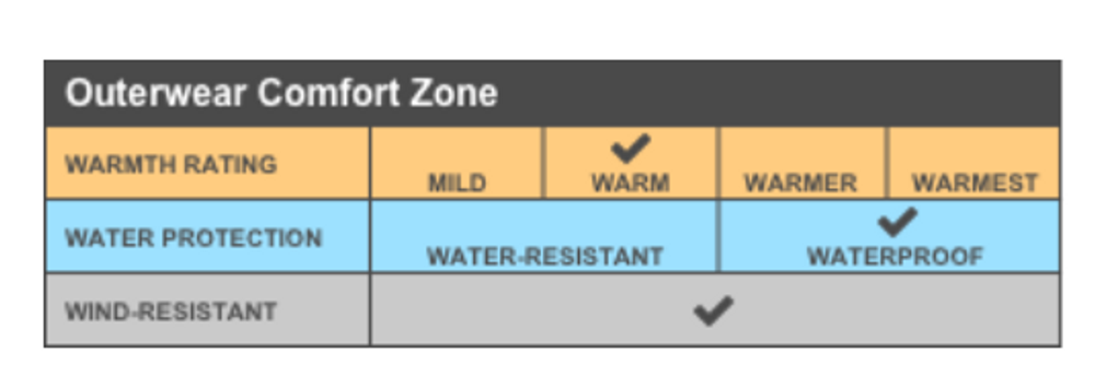 - 100% nylon shell 3000MM fabric waterproof rating.