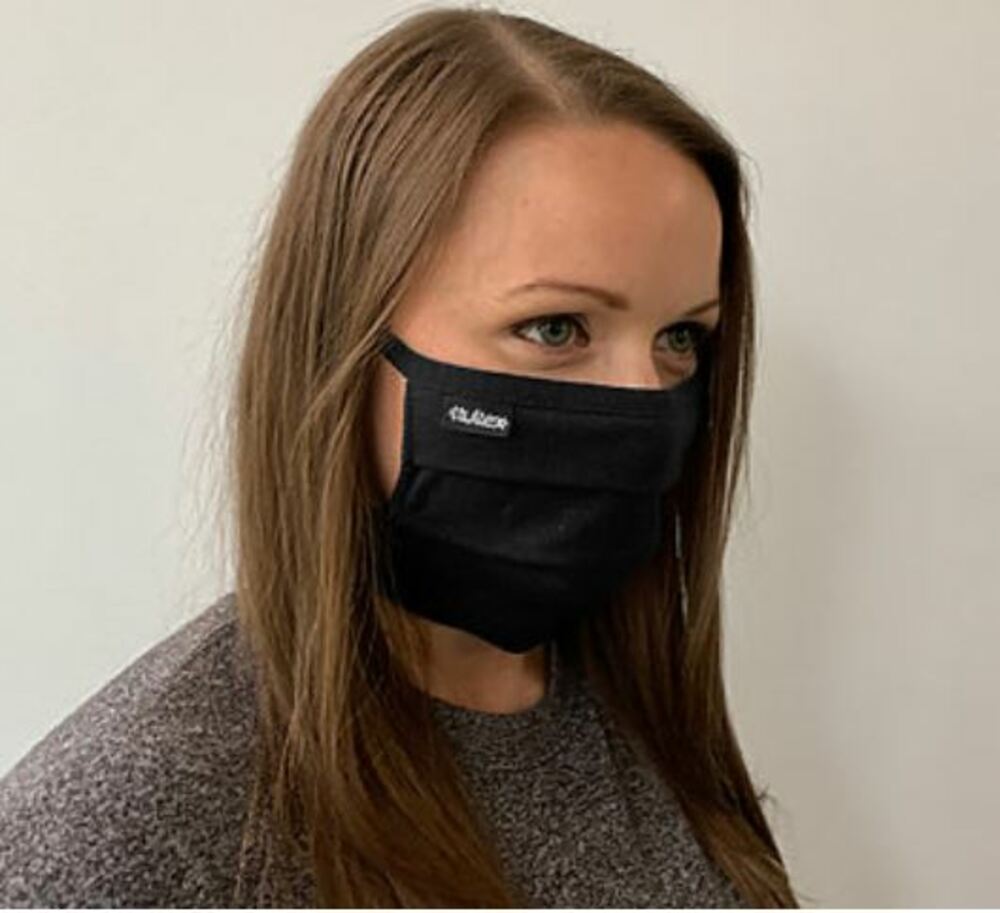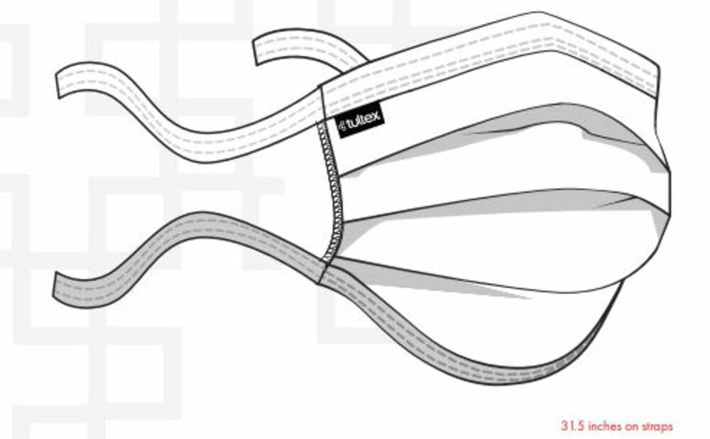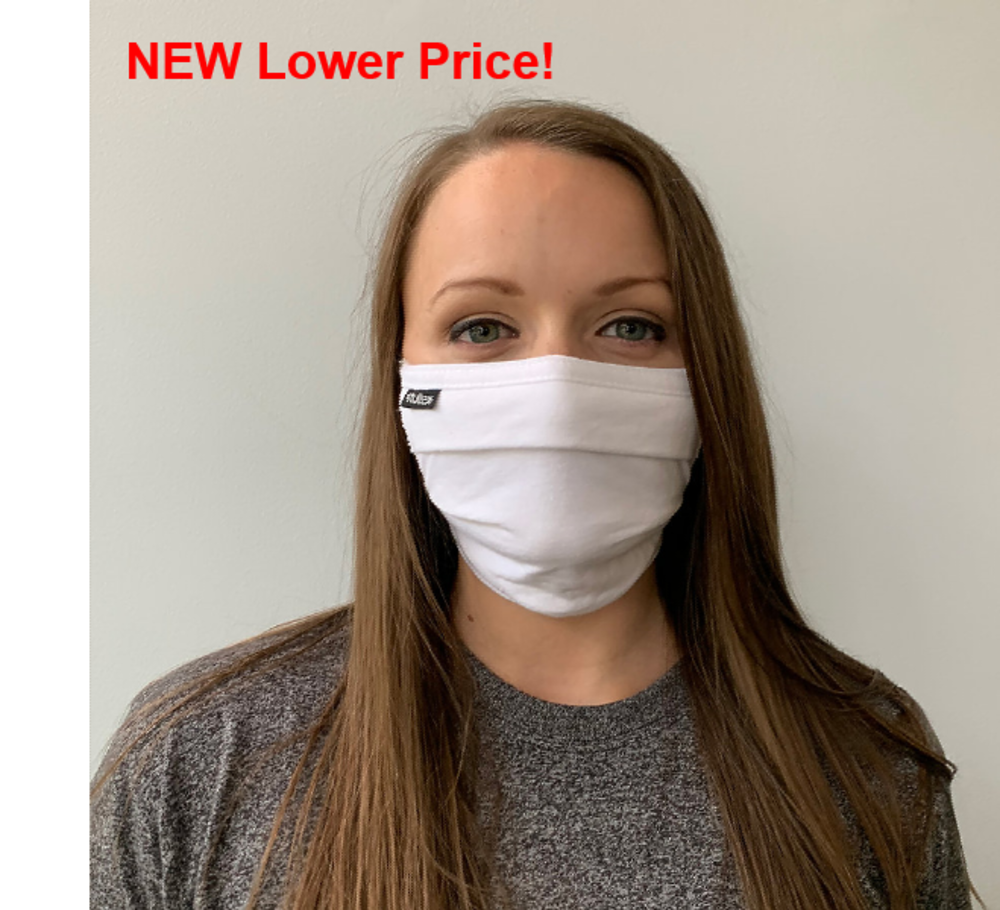Provide this mask to your valued employees and customers! This washable and reusable face mask is made of 100% US 2-Ply cotton construction with top and bottom binding, cover stitch closure and 3 pleat expansion.. It measures 5" height (flat) 7" expanded X 7.5" width. Either tie behind the head or create a loop for around the ears. This mask will fit all different ages and face structures.