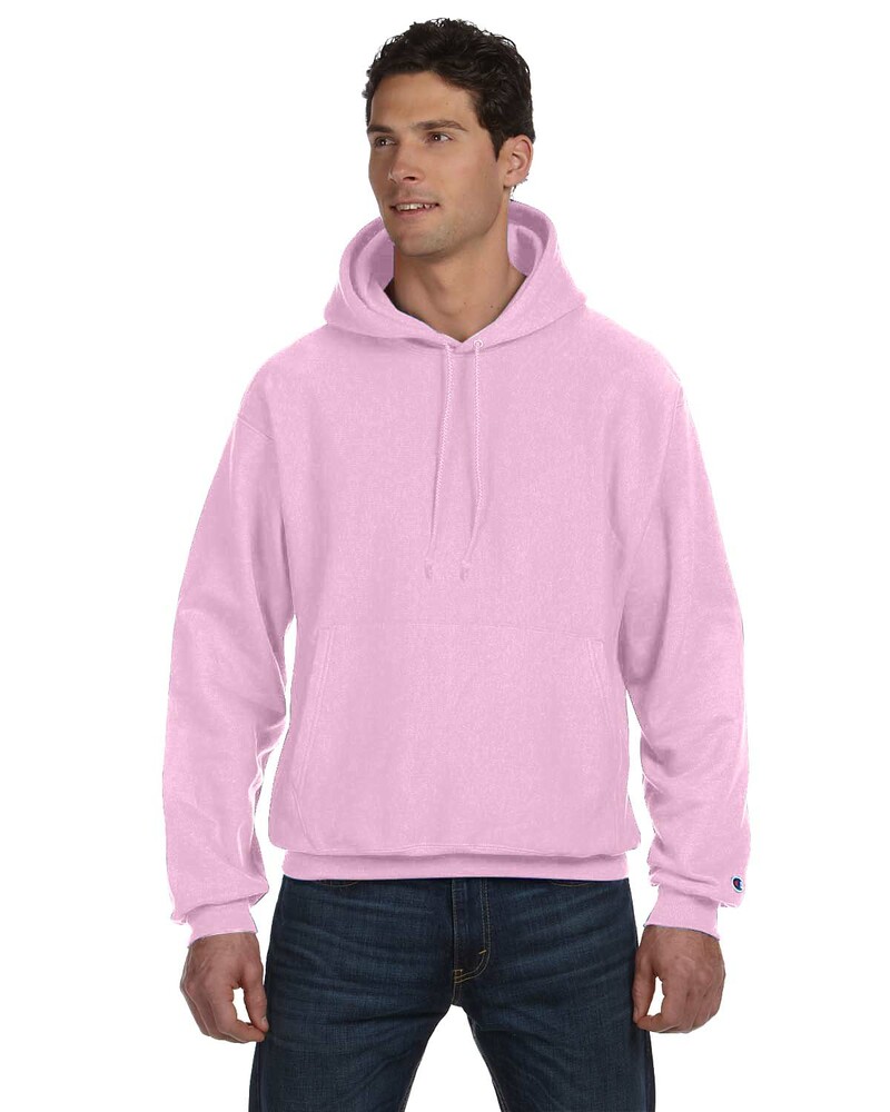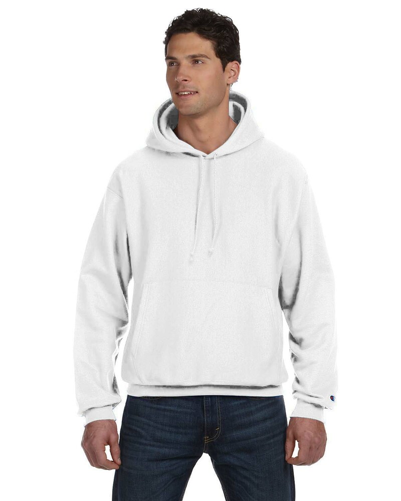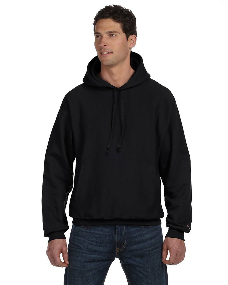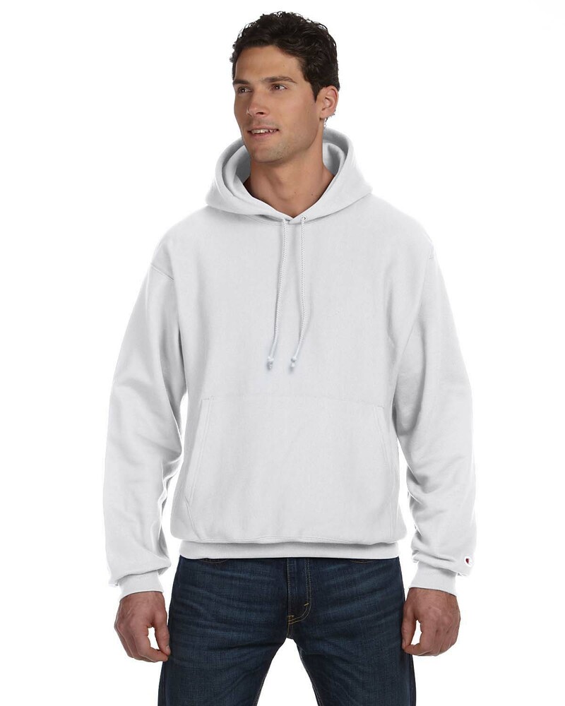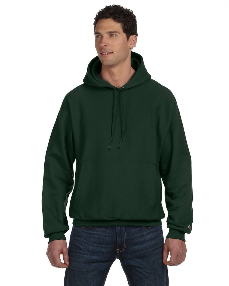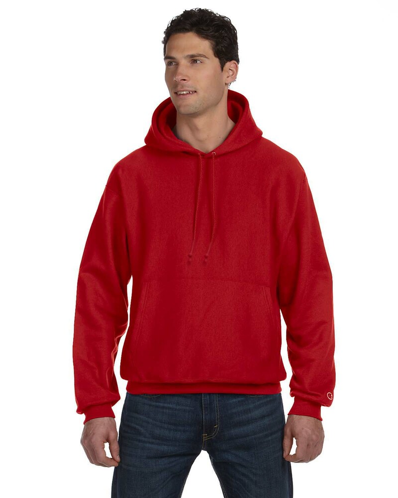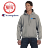 Genuine Champion® Heavyweight Hoodie is made of 12 oz., 82/18 cotton/polyester. (Silver Grey is 80/20 cotton/polyester; Oxford Grey is 78/22 cotton/polyester). Trademark Reverse Weave® resists shrinking. Features matching drawcord, 1x1 ribbed at underarm, sides and bottom band, 3 ¾” wide 1X1 ribbed knit cuffs and front pouch pocket. Embroidered “C” logo on left sleeve.