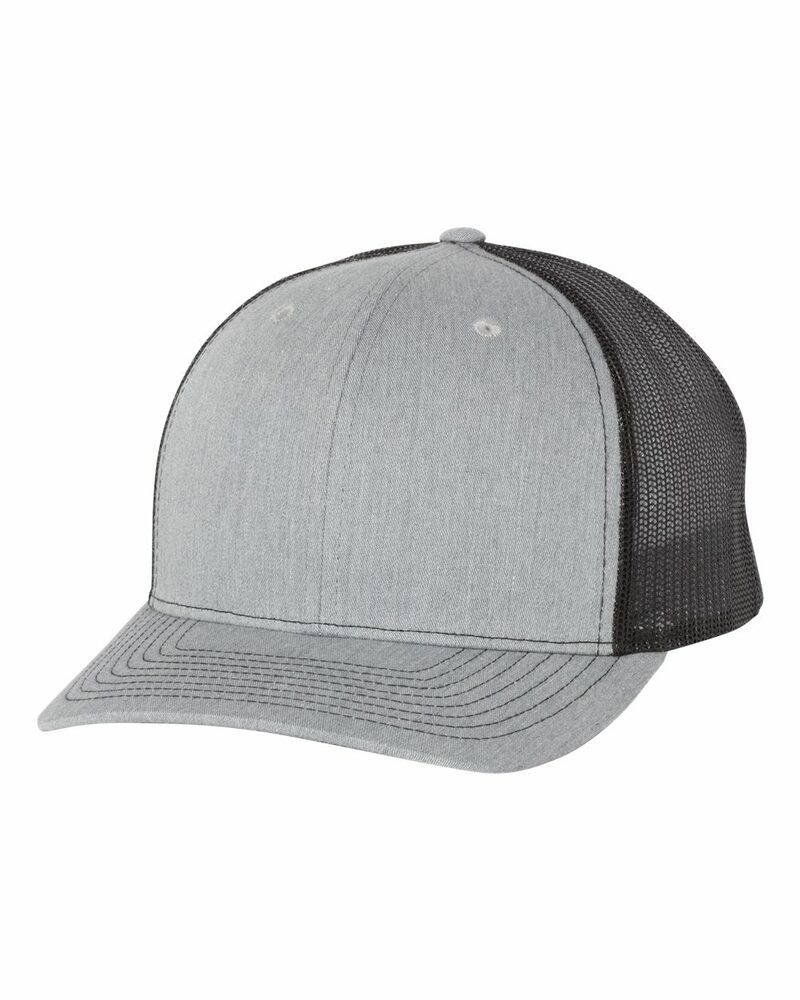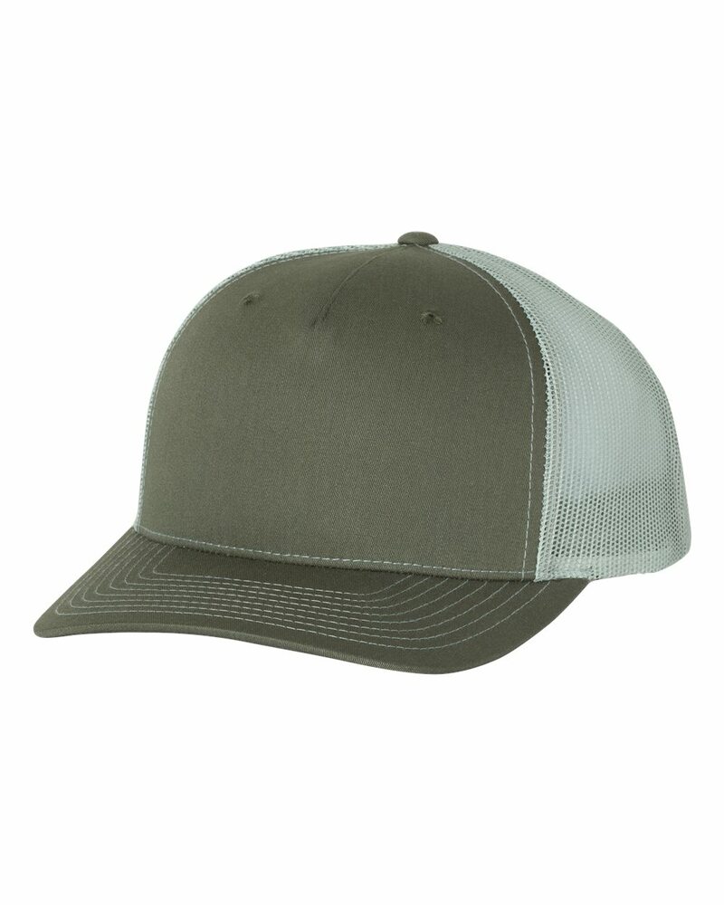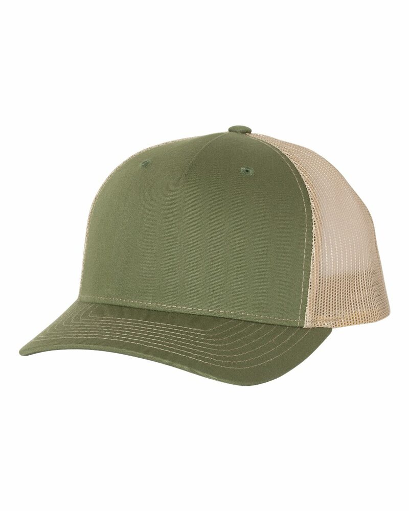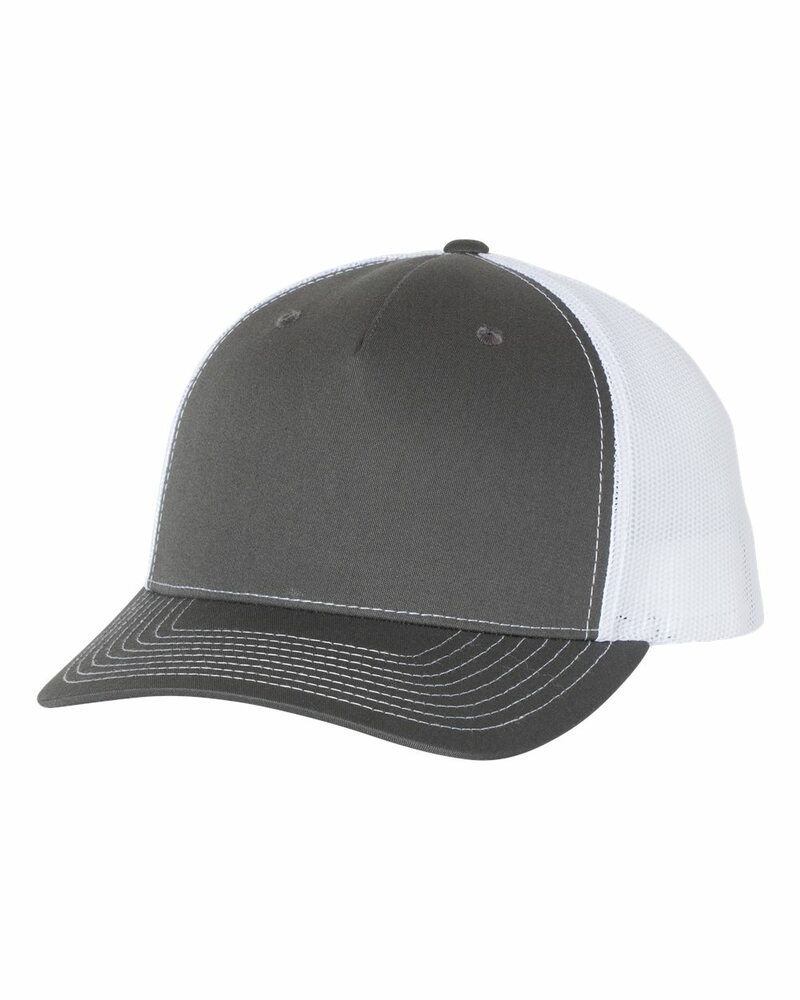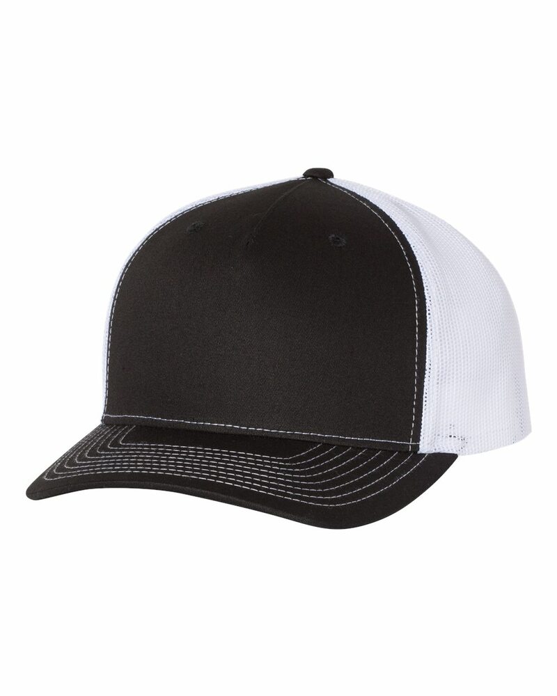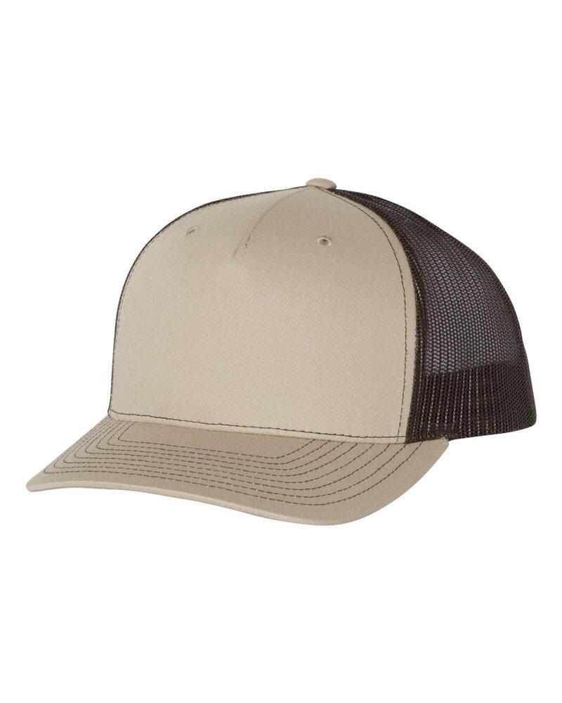 This riff on our classic 112 Trucker offers a seamless five-panel construction, delivering everything folks love about the 112 with opportunities for a wider variety of decorations and designs. Made of 65/35 polyester/cotton and 100% polyester mesh back, this cap is structured/mid-profile,with six-panels, pre-curved contrast stitched visor and snapback closure. Underbill matches the color of visor.