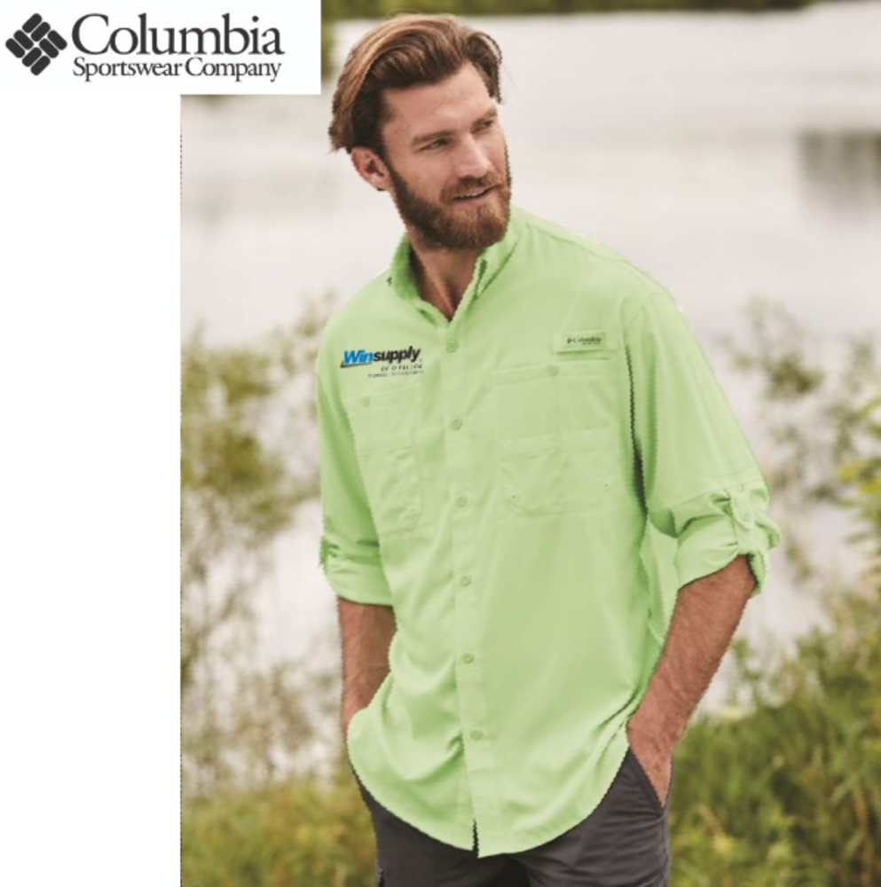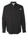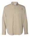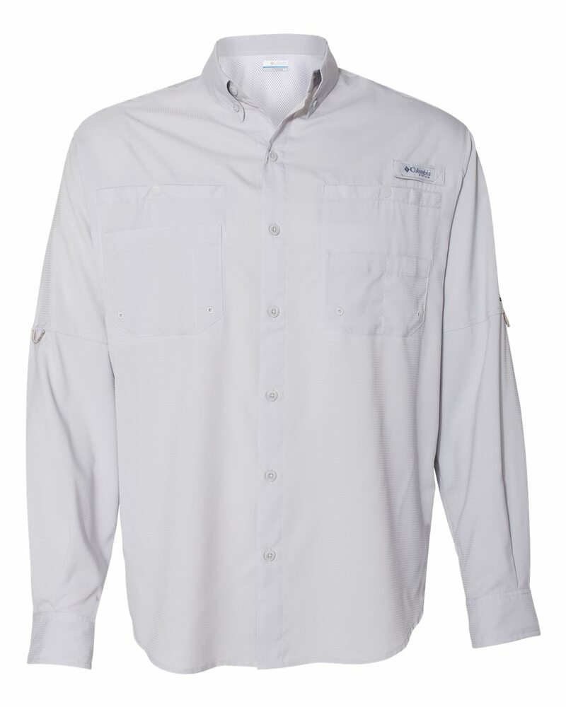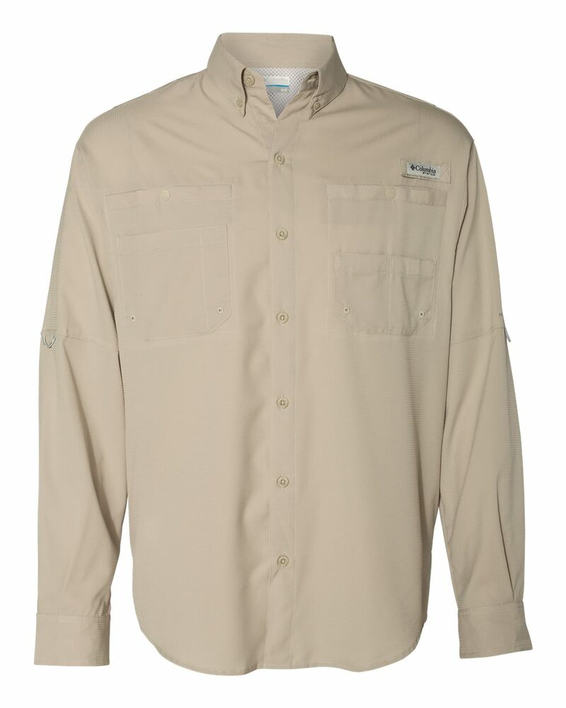 Genuine Columbia Tamiami™ II Long Sleeve Shirt. Made of 100% polyester ripstop fabric with Omni-Shade™ UPF40 and Omni-Wick™ moisture management. Hook-and-loop rod holder on left chest with Columbia logo. Mesh-lined vent at center back with convertible sleeves and chest pockets with snap closure.