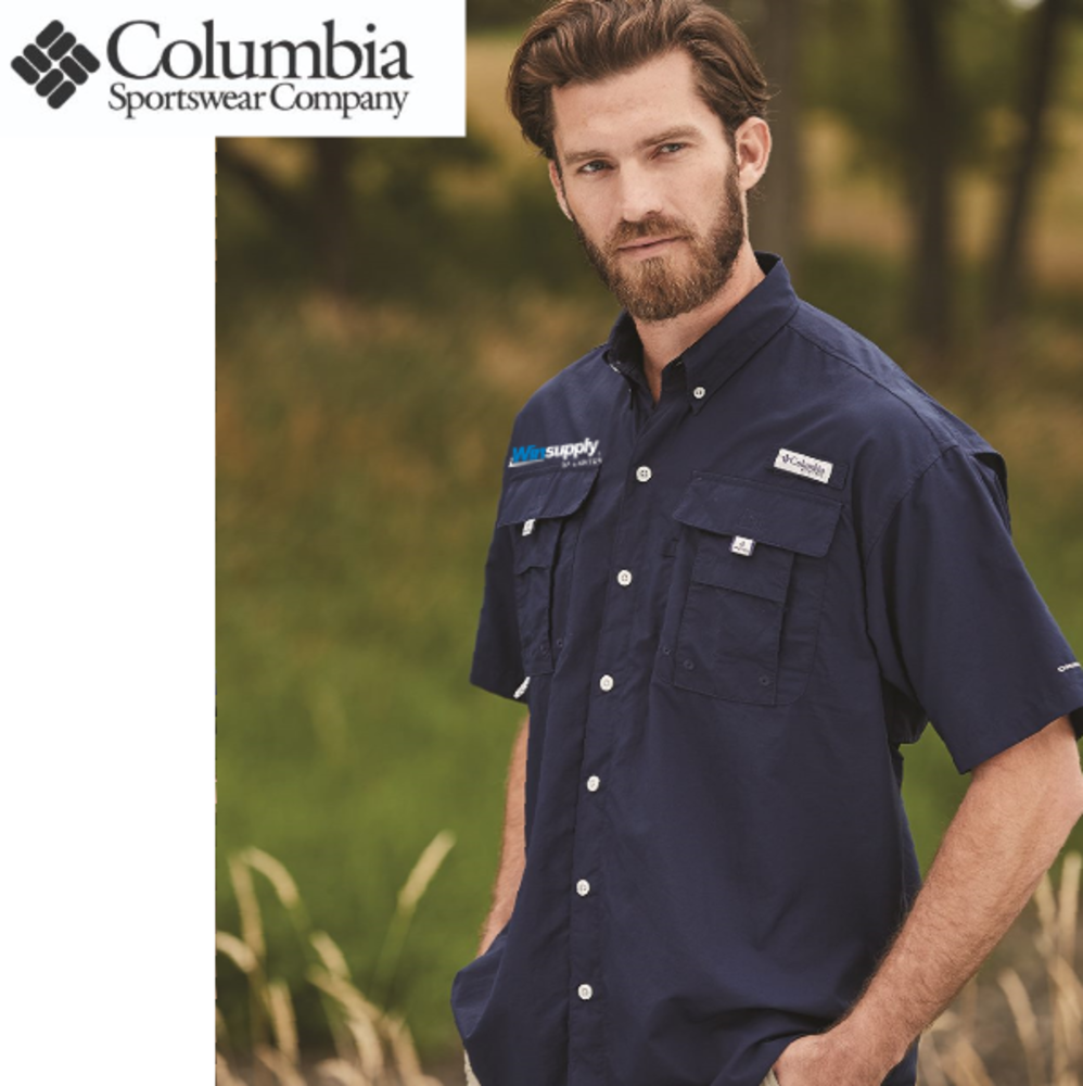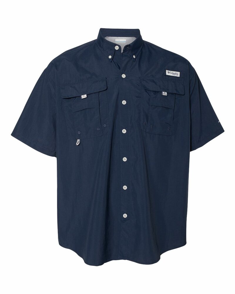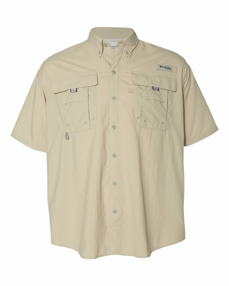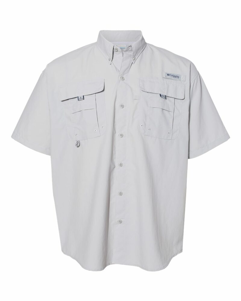Genuine Columbia Bahama™ II Short Sleeve Shirt. Made of 100% Tactel® nylon taffeta with quick dry properties and Omni-Shade™ UPF 30. Hidden ventilation at shoulders and chest pockets with hook-and-loop closure. Hook and loop rod holder with Columbia logo on left chest.