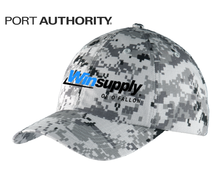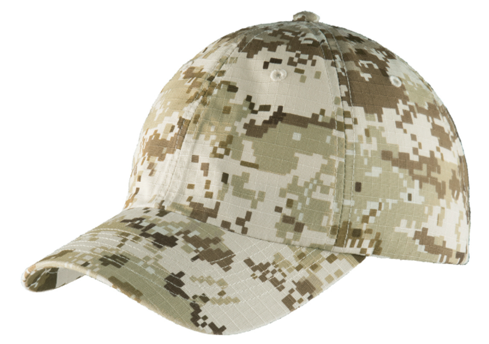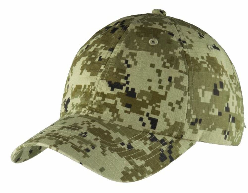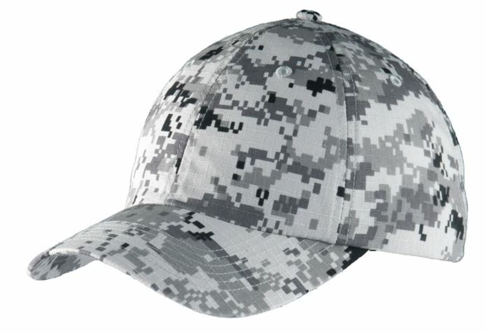 An all-over digital pattern gives this textured ripstop cap a current camo look.