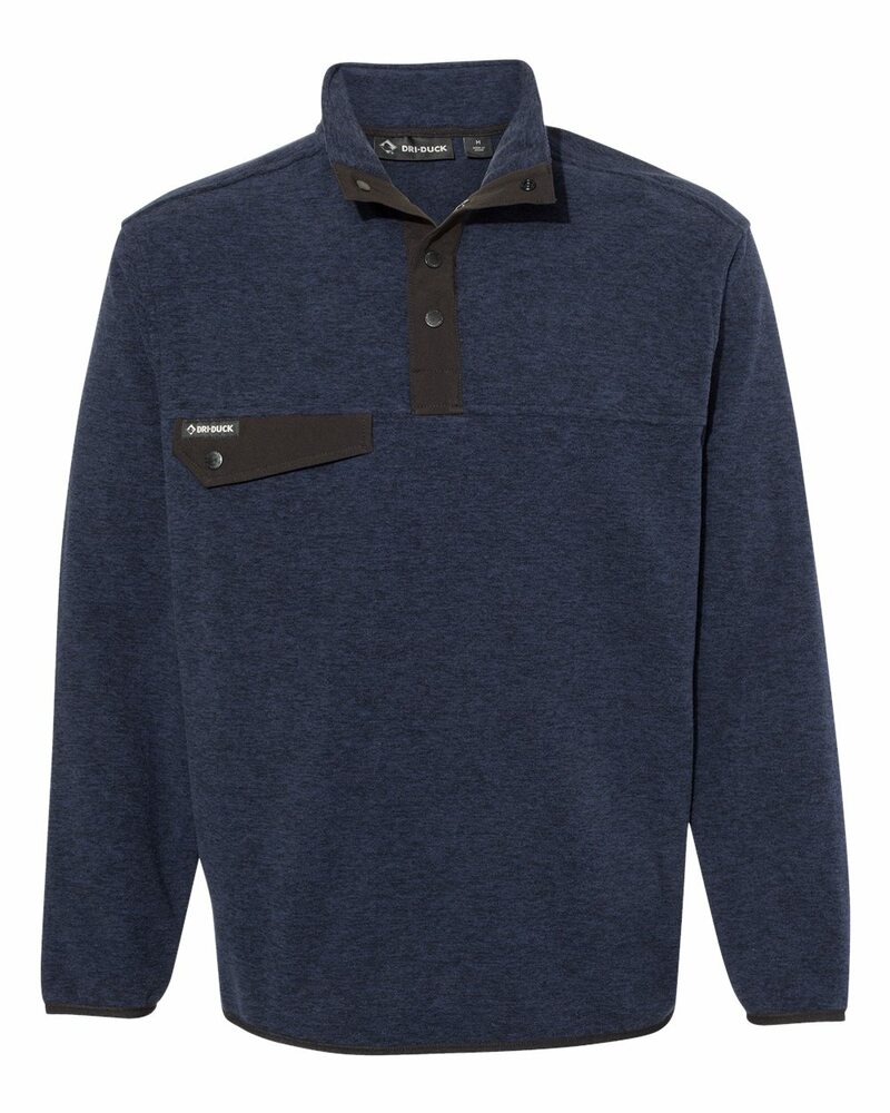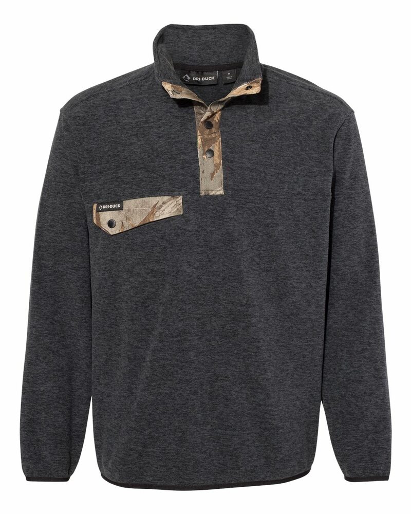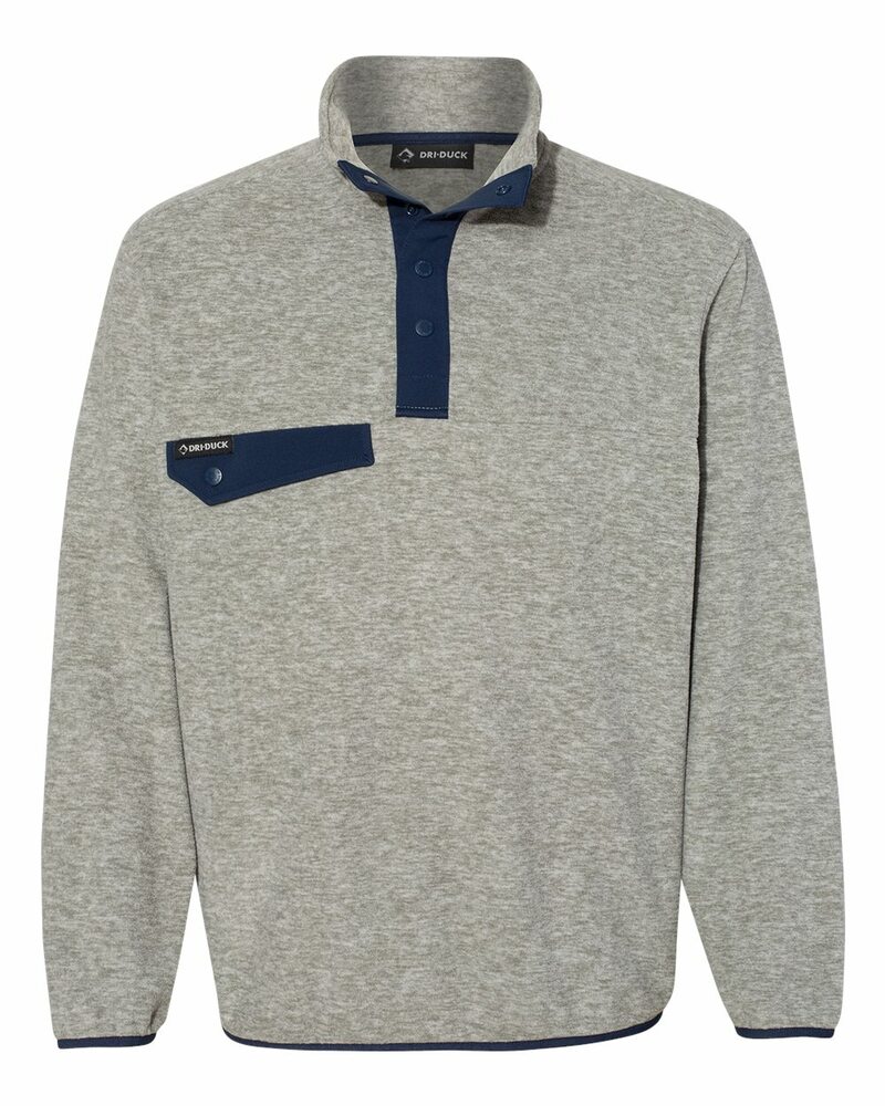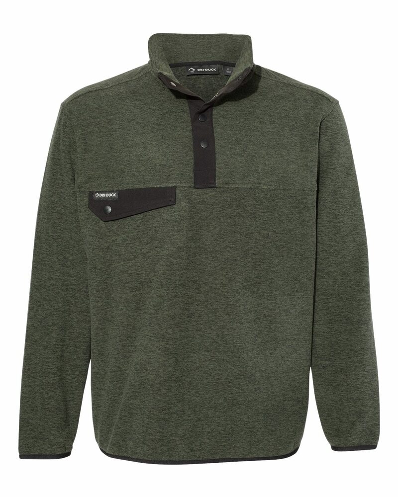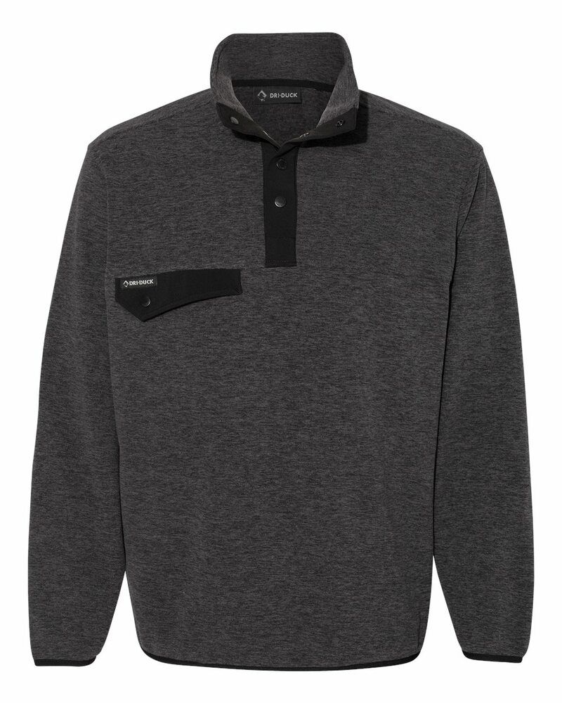 Genuine Dri Duck Denali Performance Pullover. Constructed of 7 oz., 100% polyester Melange Heather Mountain Fleece™ with 90/10 polyester/spandex dewspo placket and chest pocket. Anti-static finish and anti-pill exterior and interior to ensure longevity. UPF 50+ sun protection too.Chest pocket with snap closure and quarter-length, four-snap placket with signature DRI DUCK snaps. Stretch cuff and waistband. *Charcoal and Fatigue have a Black placket and chest pocket; Platinum has a Navy placket and chest pocket.