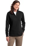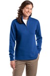 These durable colorfast quarter-zips feature a better fit with minimal shrinkage as well as 2x2 rib knit cuffs and waistband. 9-ounce 65/35 ring spun combed cotton/poly fleece. Gently contoured silhouette. Twill-taped neck. 2x2 rib knit cuffs and hem. Set-in sleeves.