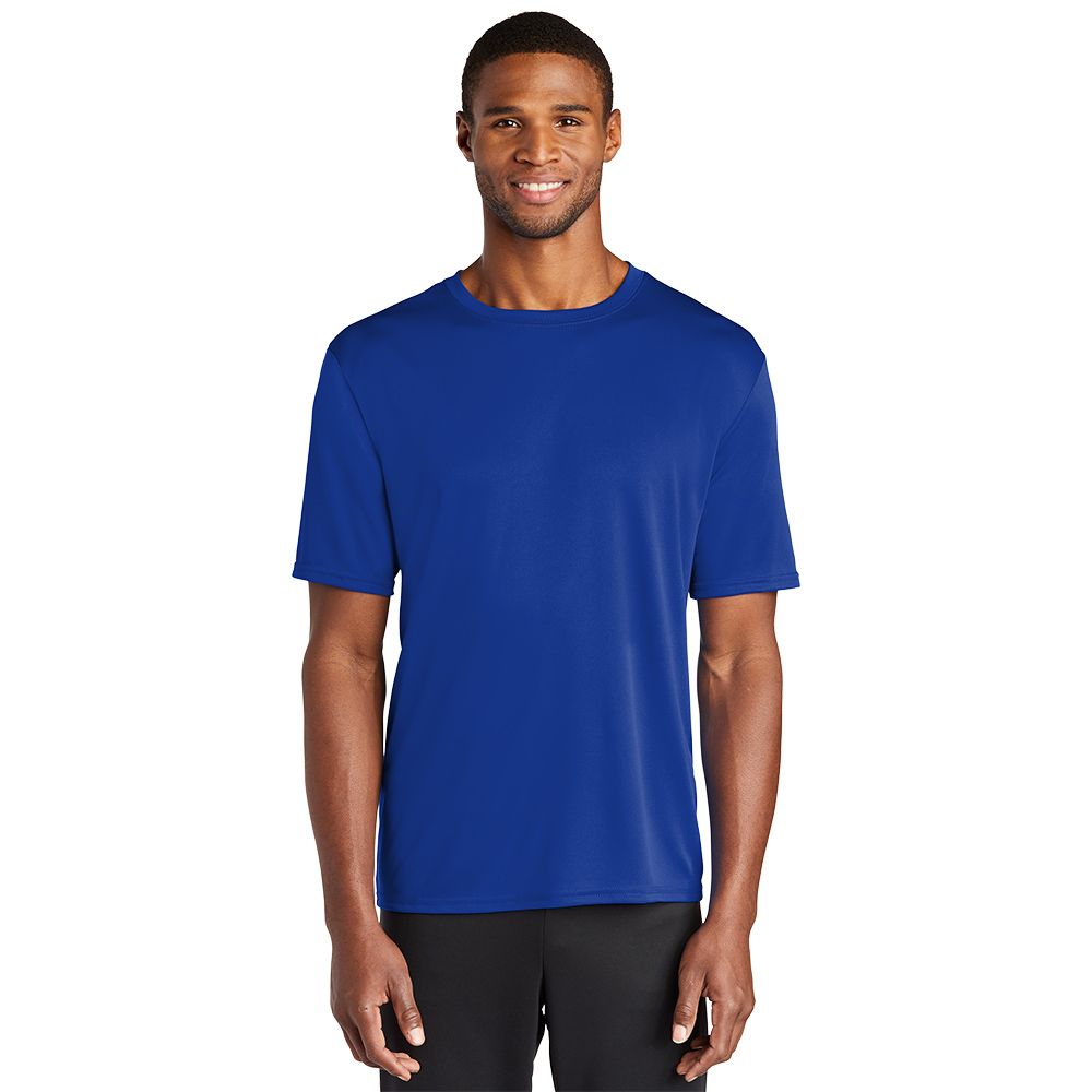 Our value-priced polyester T-shirt performs with Dry Zone moisture-wicking technology to keep you cool dry and comfortable. 3.8-ounce 100% polyester. Tag-free label. Set-in sleeves. Double-needle neck sleeves and hem. Side seamed.